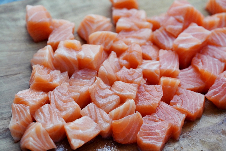 썰어둔 연어도 넣어준다. 연어는 1-2분이면 다 익으므로 제일 마지막에 넣도록 한다.