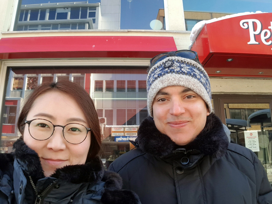 작년에 왔던 각설이도 아니고 굳이 이 서늘한 동네에 또 오긴 했다만, 사실 우리부부는 추위에 강하긴 커녕 최약체 조합에 가깝다. 대학원때 까지만 해도 겨울이면 입술 시퍼래갖고 발발 떨며 다니던 한 명+ 사막나라에서 나고 자라 날씨라면 그저 hot, hotter, hottest나 알던 또 한 명. 이런 사람들이 언제부턴가 추위에 익숙해지고 무려 북극권에서 두 번이나 살아 돌아오다니 ㅎ 역시 인간은 적응의 동물이라 하겠다.