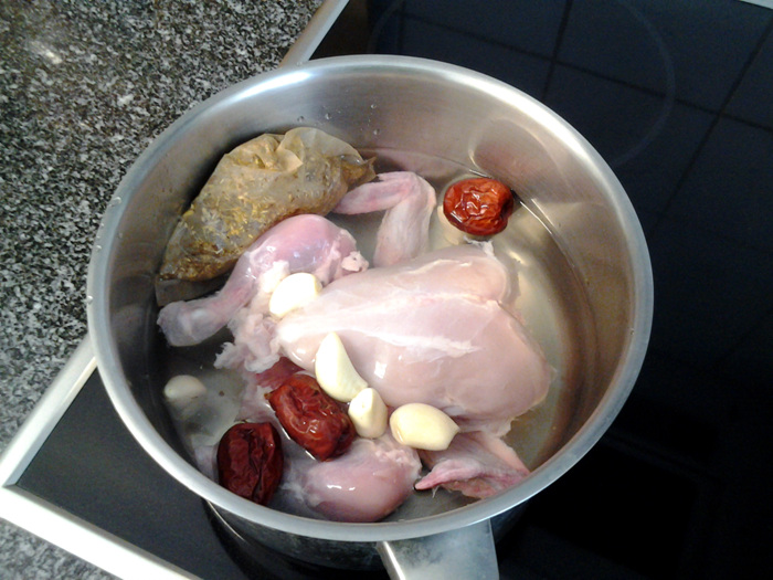 삼계탕과 그 속에 들어있는 찹쌀밥을 먹으면 몸이 막 보양되는 기분이 들어서 좋아하는데 과연 이 누룽지 닭백숙이 그 비슷한 기분을 내줄 수 있을까 함 해먹어보기로 한다. 우리엄마였다면 화학조미료 듬뿍 들어간 인공적인 맛이라고 (먹어보기도 전에) 고개를 절레절레 흔들었겠지만 어무니도 타향살이 13년이면 맴이 바뀌실 걸. 조미료의 맛 또한 한국의 맛일지니...용서가 되실 것이옵니다. 티백 속 재료는 이러저러한 게 들어있다고 적혀있긴 하나 사실 정확한 정체는 알 수 없고 -.- 양심에 맡기는 수 밖에.
