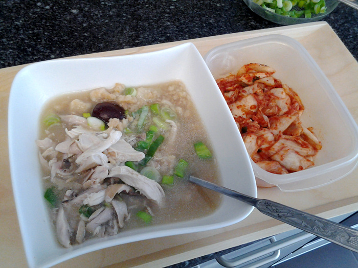 닭이 익으면 건져내고 누룽지를 넣어서 끓인다.