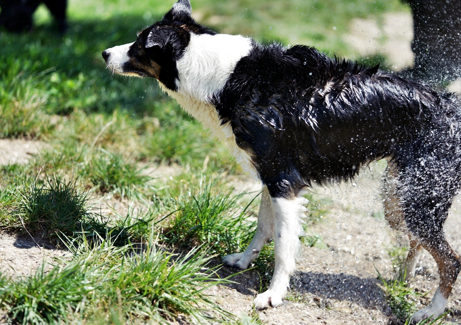 막대기는 옆에 잠시 모셔두고 물장구에 몰두하기 시작한 녀석들. 기다리던 견주는 햇빛 아래 낮잠에 빠져드는데. ㅎㅎ
