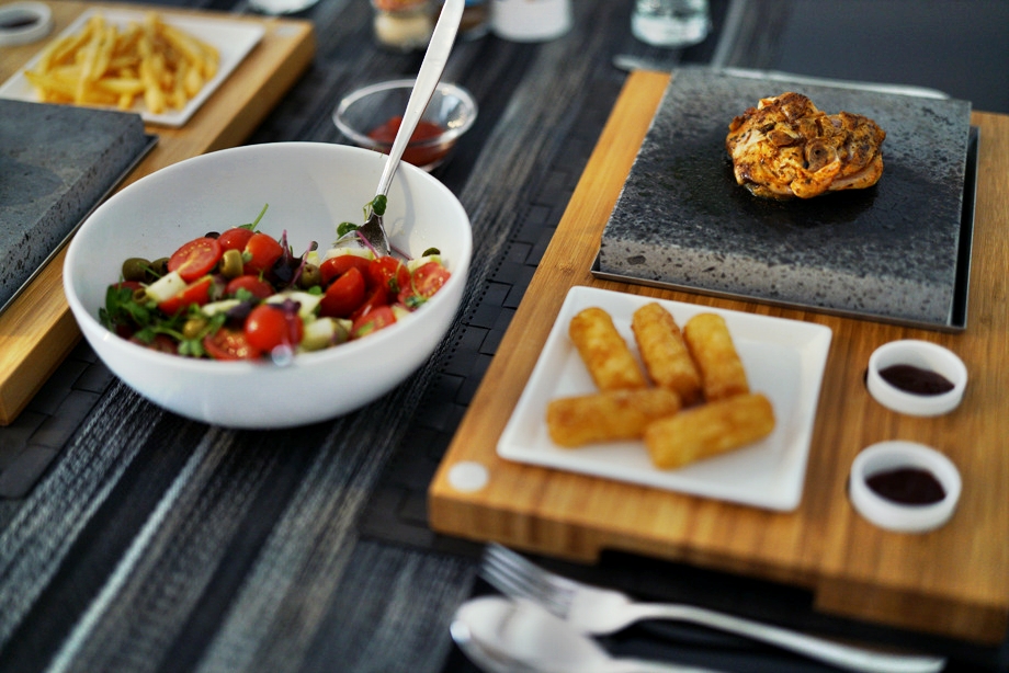 고기 사온 김에 얼마전 산 핫스톤 세트도 써보자고 의기투합.. 지글지글 굽기 시작. 감자튀김 진짜 쪼끔만 먹겠다던 사메는 더 없냐고 찾고.. 나는 소고기 한조각만 먹으려고 했는데 어느새 치킨도 굽고 있고.