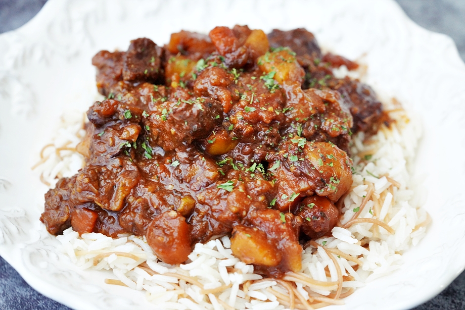 나가기 전 오븐에 넣어놓고 갔던 굴라쉬가 푹 잘 익었다. 진하고 자작하게 잘 졸아들었다.